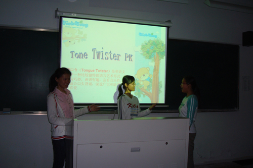 此次活动共分英语趣味短片、Try to Quick Your Mind!!(脑筋急转弯)、Tonegue Twister PK(绕口令比拼)和比划猜词四个环节。趣味英语短片让同学们尽致淋漓领略英语场景的风趣幽默的同时,尽情感受到了英语语言的魅力。英语脑筋急转弯环节中的问题非常寻常而回答出其不意,非常古怪而回答笨拙老实,不仅锻炼了同学们思维的灵活性,还加深、扩充了同学们的英语词汇、句子知识。绕口令是英语文学中一种比较独特的语言艺术形式,它结构巧妙,诙谐有趣,富有音乐性。参与比拼的同学以较快的语速、准确的发音和伶俐的口齿赢得了在场同学的阵阵喝彩。激烈的比划猜词竞赛更是将活动推向了高潮!