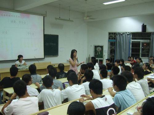 会上杨振海老师向新生们讲述了自身的大学成长经历和对学科的认识,希望大一新生能够及早规划自己的人生,正确处理好大学期间的学习、工作与生活。接着新一届团委学生会成员详细介绍了各部门职能及学生会招新的具体情况。新生对学生会充满了向往,反响十分热烈。整个交流会历时两个半小时,无论是大二、大三的老生还是的大一的新生都表现出了极高的热情,整个交流会场气氛十分热烈。