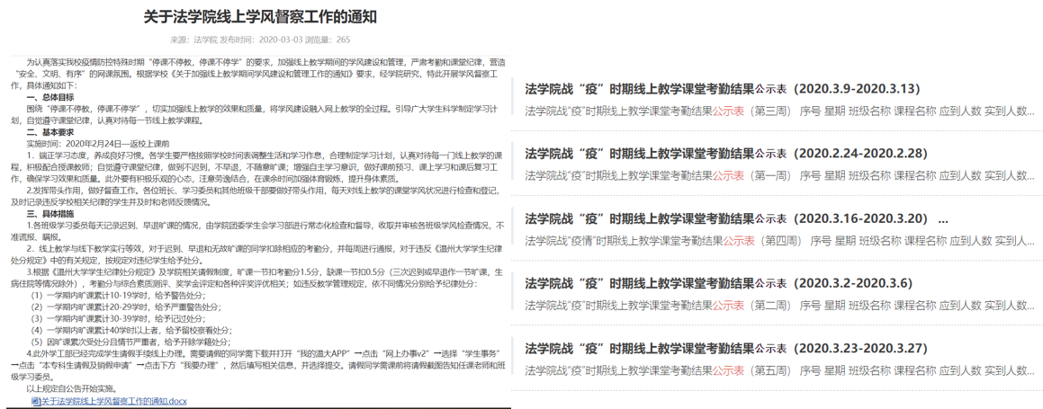 “晒”监督机制,出台《关于麻将胡了试玩 线上学风督察工作的通知》,号召全体学生自律、自觉完成网络学习任务。