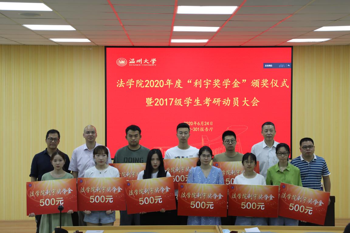 麻将胡了试玩 “利宇奖学金”由校友谢璐女士设立,对考取研究生同学每人奖励500元。据悉,麻将胡了试玩 紧抓学生考研工作,以“宣传动员、制度建设、强化辅导、周到服务”为行动纲领,多措并举助推学生考研工作。麻将胡了试玩 2020届毕业生最终被国内高校录取10人,被国外高校录取1人,多名学生被复旦大学、浙江大学、北京师范大学、华东政法大学、暨南大学、范德堡大学等国内外重点高校录取。