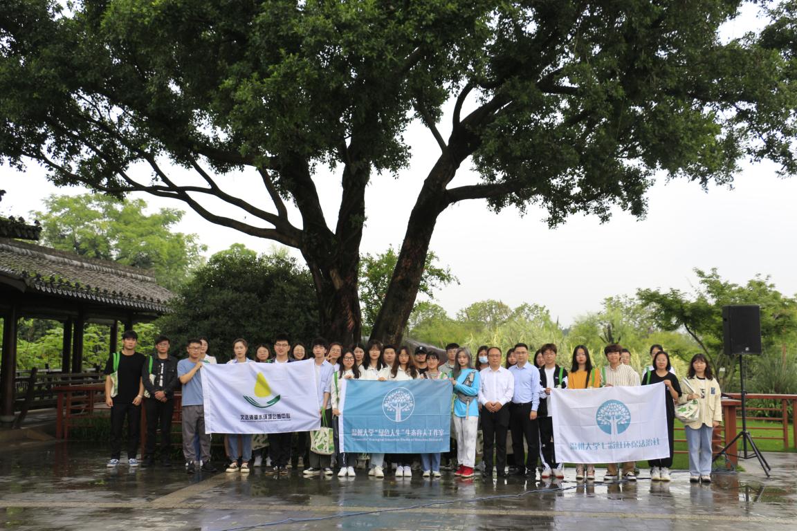 活动第二阶段,本次活动的全体代表来到习近平总书记18年前亲手栽种榕树下,聆听温州生态园管委会领导讲述“大榕树”的历史和习近平同志的生态文明思想。随后,环保志愿者代表发出倡议设立“温州市湿地保护日”。现场代表们在签名墙上认真地写下自己的名字,一笔一划中尽显大学生为环保事业做贡献的决心。