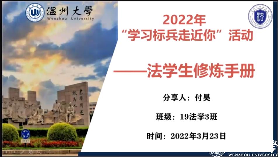3月23日晚,麻将胡了试玩 在腾讯会议举行“节令三耕”学风建设系列活动之“学习标兵走近你”学习分享会。本次分享会邀请了麻将胡了试玩 2021年“学习标兵”付昊、徐静仪、唐宸宸同学分别作题为“法学生修炼手册”、“让每一秒都有意义”和“竞赛之于我们”的精彩分享。