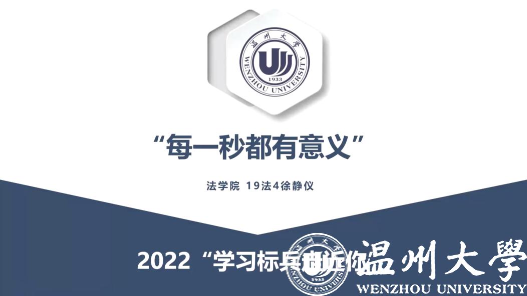 19法4班徐静仪同学结合自己的亲身经历,从一位并不喜欢法学的“被调剂”同学到法学学习的“标兵”,以心态转变带动行动实施,从学习、实习和竞赛三个方面分享了奋斗历程。她说:“我对每一秒都有意义”的理解是,你遇见的每一件事,都有其存在的意义。要脚踏实地去做好每一件事,无论是学习又或是娱乐,他们都是你人生独有的一部分。” 她认为实习生活对与自身发展具有关键作用,她分享去年暑假在温州市中级人民法院执行庭实习经历,从归档、盖章、开介绍信,一审批表、审限变更表、移交评估审批表到发起协查、申请电子签批等等的学习。