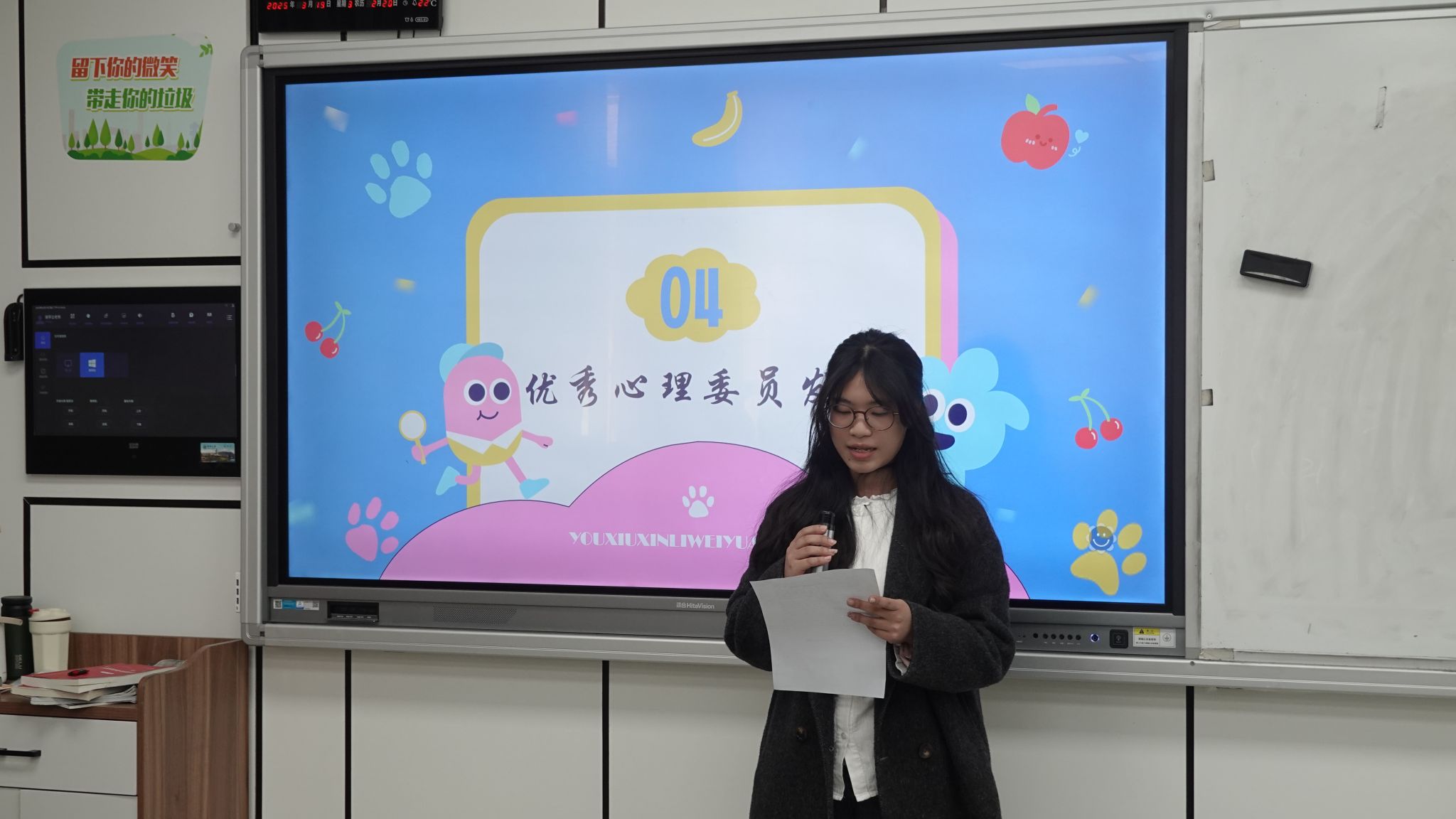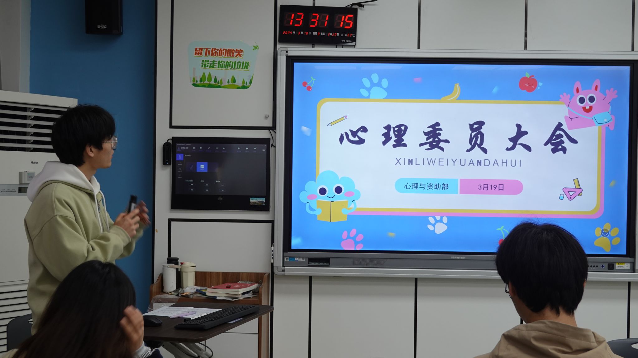 会议以心理周报机制优化、近期重点工作部署、新学期特色活动规划、优秀心理委员经验分享为四大模块有序展开。心理与资助部部长黄超同学系统梳理了上学期工作成效,重点回顾了上学期心理周报汇报情况,提醒心理委员履行工作职责,切实发挥心理健康教育工作的“前哨”作用。