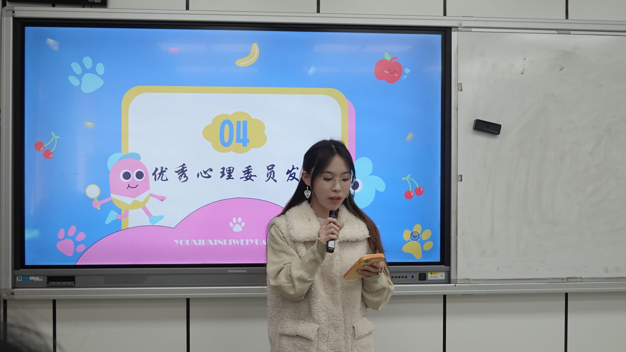 在经验交流环节,优秀心理委员张秀兰、赵紫舒两位同学结合班级特色,从日常观察技巧、朋辈互助方法、危机干预路径等方面进行了生动分享。她们认为要注重建立信任关系,在尊重隐私的前提下提供支持,通过“润物细无声”的方式守护班级心理健康。