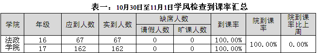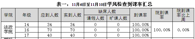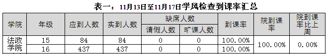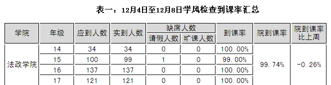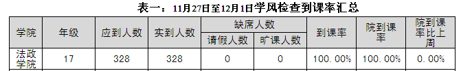 2017年下半学期学生处学风检查 法政麻将胡了试玩 到课率情况(12.29更新)