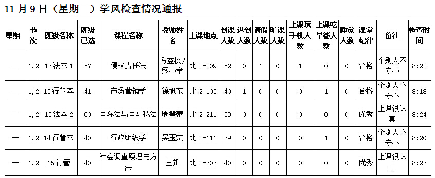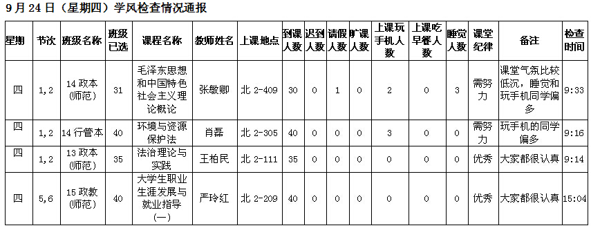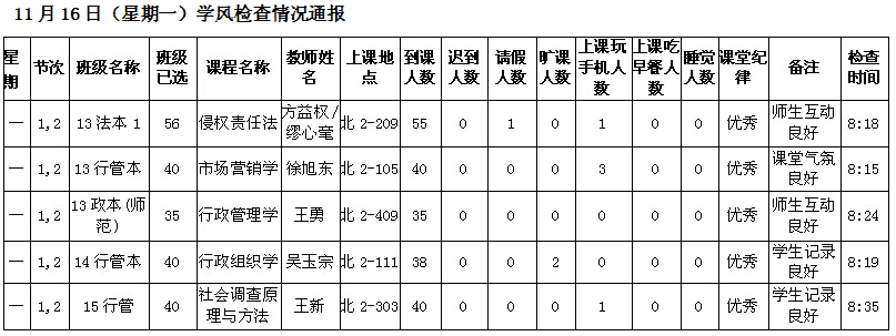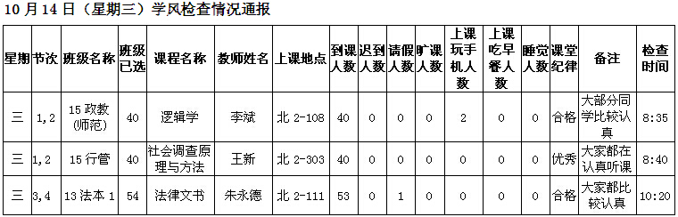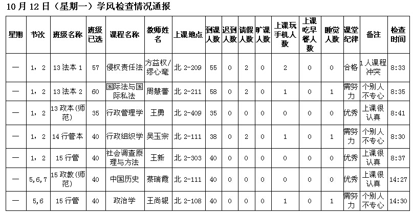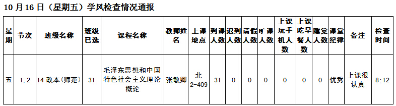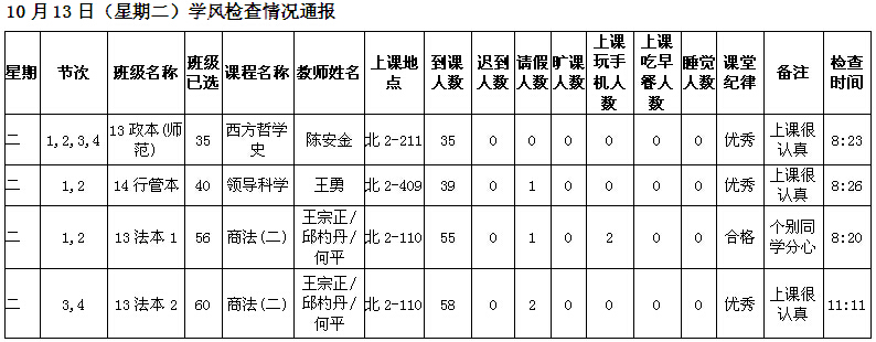 1.优秀,人员到齐,纪律良好;2.合格,人员到齐或有请假,纪律一般;