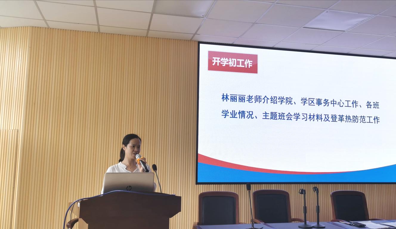 林丽丽介绍了学生科辅导员分工与职责,就开学初麻将胡了试玩 、学区事务中心工作、各班学习情况、主题班会学习材料及登革热防范工作做了详细安排。