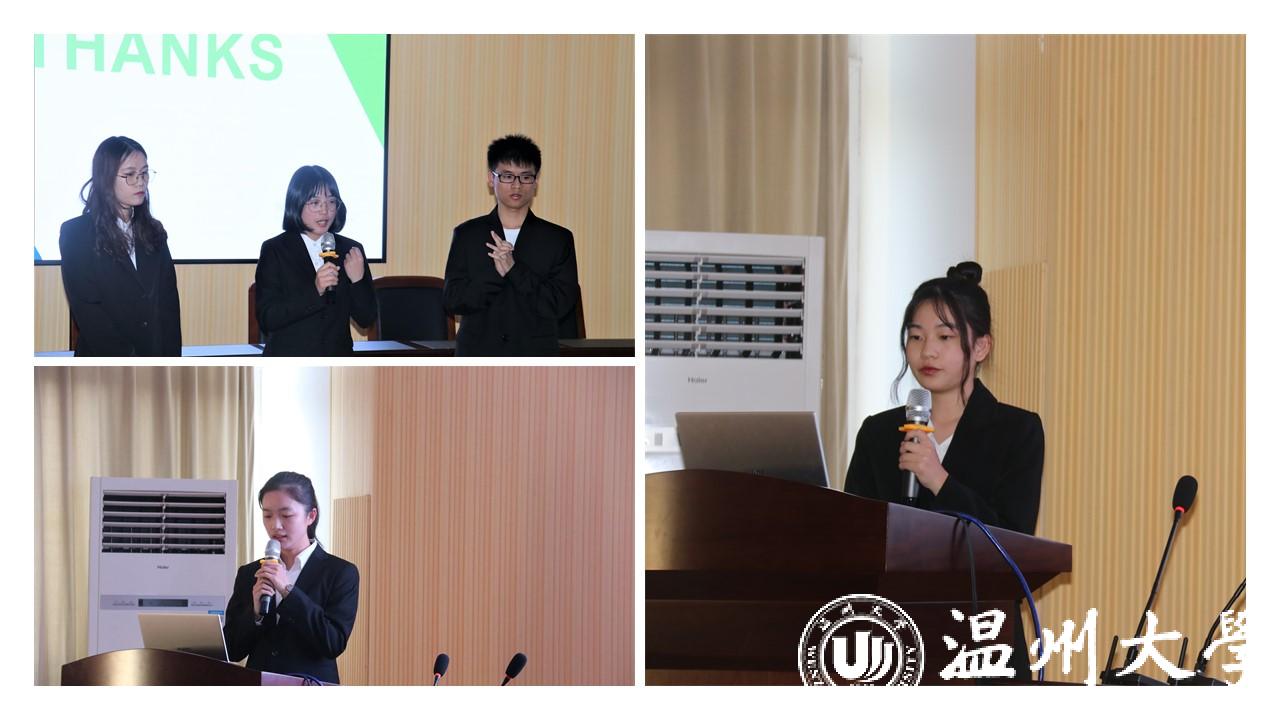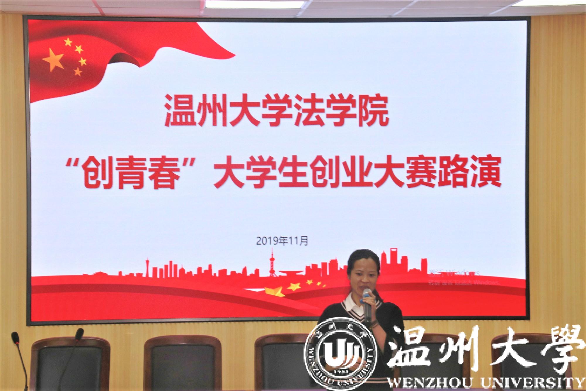 2019年11月14日下午,麻将胡了试玩 “创青春”大学生创业大赛路演在麻将胡了试玩 301举行。活动邀请湖南大学教授汪忠、温州大学国际教育麻将胡了试玩 党总支书记林爱菊、温州大学团委副书记丁强、麻将胡了试玩 院长王宗正、党委书记林钦、党委副书记杨振海、副院长周湖勇出席本次活动并指导。