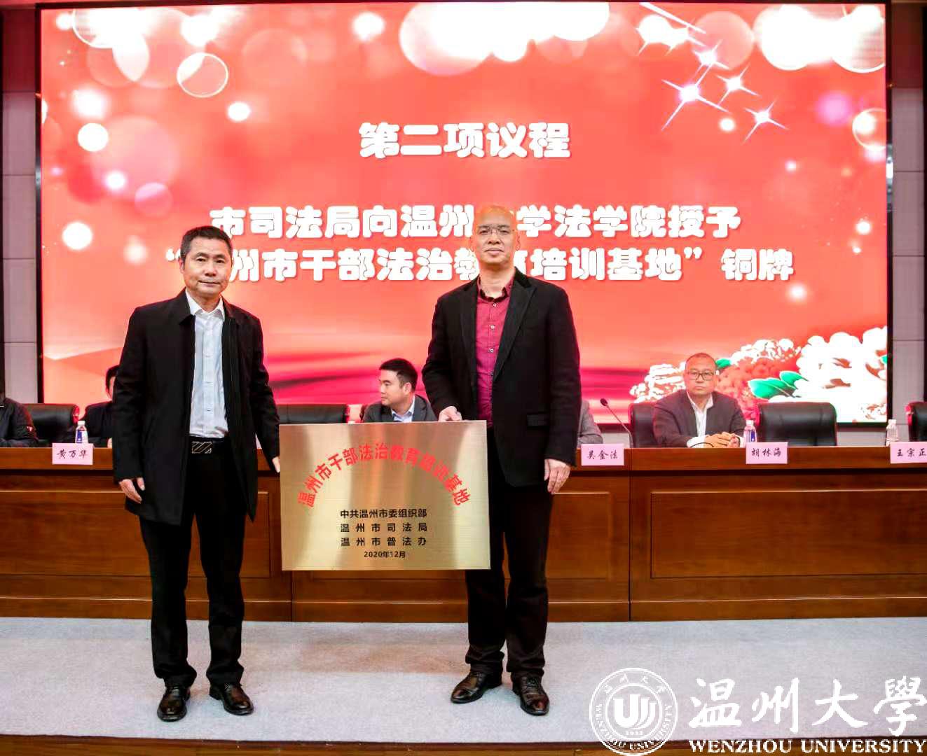 2020年12月1日上午,温州市干部法治教育培训基地授牌仪式暨瓯海区领导干部学法清单制度试点工作“开班第一课”在温州大学图书馆报告厅隆重举行!温州市干部法治教育培训基地正式落户麻将胡了试玩(中国)官方网站 。