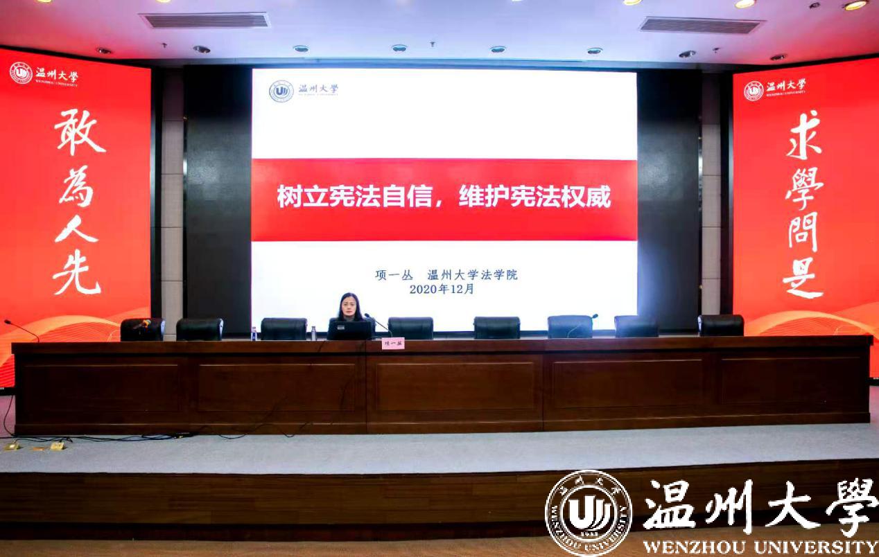授牌仪式之后,正式展开了瓯海区领导干部学法培训,首先由麻将胡了试玩(中国)官方网站 项一丛教授以《树立宪法自信,维护宪法权威》为题,开启了“开班第一课”。同日下午,麻将胡了试玩(中国)官方网站 茅铭晨教授和瓯海区司法局党组成员金毕成同志分别以《干部依法行政与法律风险防范》和《温州市瓯海区历年行政诉讼败诉案件复盘分析》为题展开授课,与会的各位领导都表示受益匪浅。