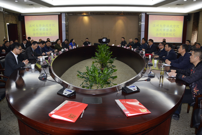 与温州市禁毒办在温州大学岩松堂白鹿厅举行禁毒教学培训基地揭牌仪式,共同成立禁毒教学培训基地。仪式由温州大学法政麻将胡了试玩