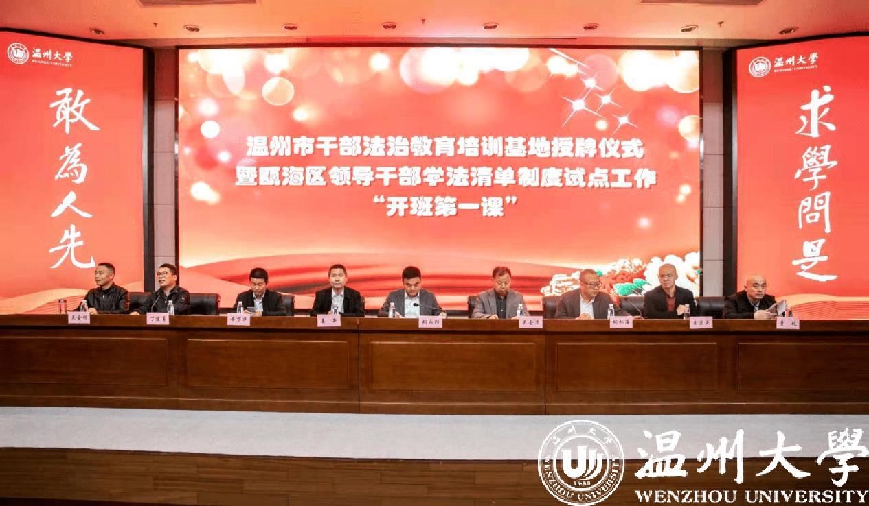 12月1日上午,温州市干部法治教育培训基地授牌仪式暨瓯海区领导干部学法清单制度试点工作“开班第一课”在温州大学举行。温州市干部法治教育培训基地正式落户麻将胡了试玩(中国)官方网站 。
