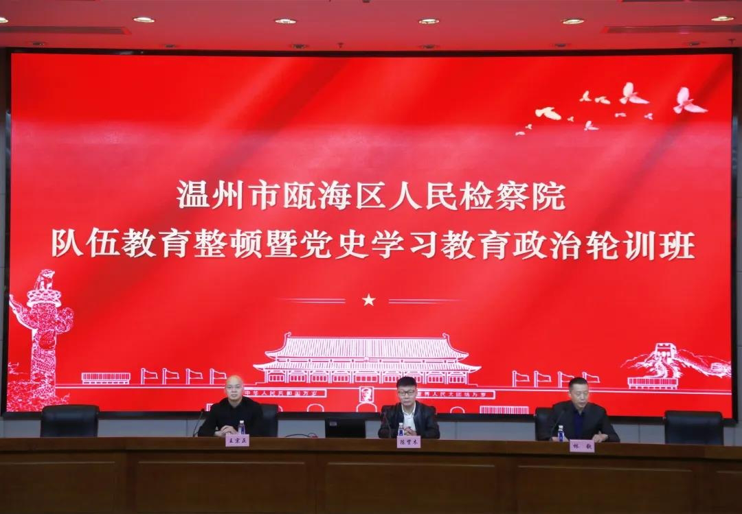 为进一步统筹党史教育,贯彻落实政法队伍教育整顿动员部署要求,推进政治理论学习,3月23日,瓯海区检察院党史学习教育暨队伍教育整顿政治轮训班在温州大学图书馆开班。瓯海检察院党组书记、检察长陈贤木,麻将胡了试玩(中国)官方网站 院长、教授王宗正作开班讲话。