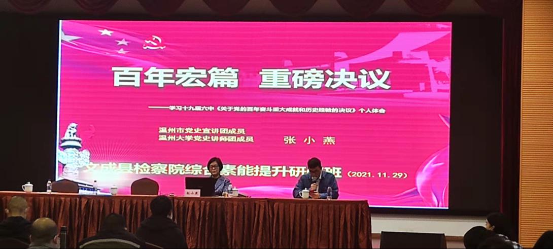 麻将胡了试玩(中国)官方网站 针对文成县人民检察院的需求精心准备培训内容,多角度入手展开专题教学。马克思主义麻将胡了试玩 张小燕教授围绕百年党史,对三大决议作了高度抽象的概括和精彩的解读,呼吁广大青年敢于寻梦、勤于追梦、善于圆梦;麻将胡了试玩 付翠莲教授从概念介绍、重要意义和实施措施三方面分析了基层社会稳定风险评估及其中的法律分析问题;谢丽珍副教授以企业合规不起诉制度为切入,提出如何对检察职能进行延伸和突破的问题,通过引入刑事激励等概念加强对民营企业的保护;陈以拓博士由浅入深,既有证据审查、质证发问等的实践技巧,又有证据证明力的理论高度,从事实性控制、矛盾事实与差异事实三个角度重点分析了庭审发问的原理与方法;范兴科博士对数字化改革的国家政策、工作汇报和温州典型案例进行分析,强调要以问题为导向,准确把握数字化改革的内涵要求、重点任务等,从而推进数字化改革的发展;任江副教授将民法典婚姻家庭编与继承编重点制度与检察院职能相结合,从解释论的视角分析了意定监护监督机制、法定居住权、隐瞒重大疾病婚姻可撤销等问题;周湖勇教授以《未成年人保护法》修订为主线,阐述了修订的基本思路、主要情况、创新亮点等,重点分析了与未成年人检察工作的关联性,提出要以最有利于未成年人保护和国家责任为原则,给予未成年人充分的保护。
