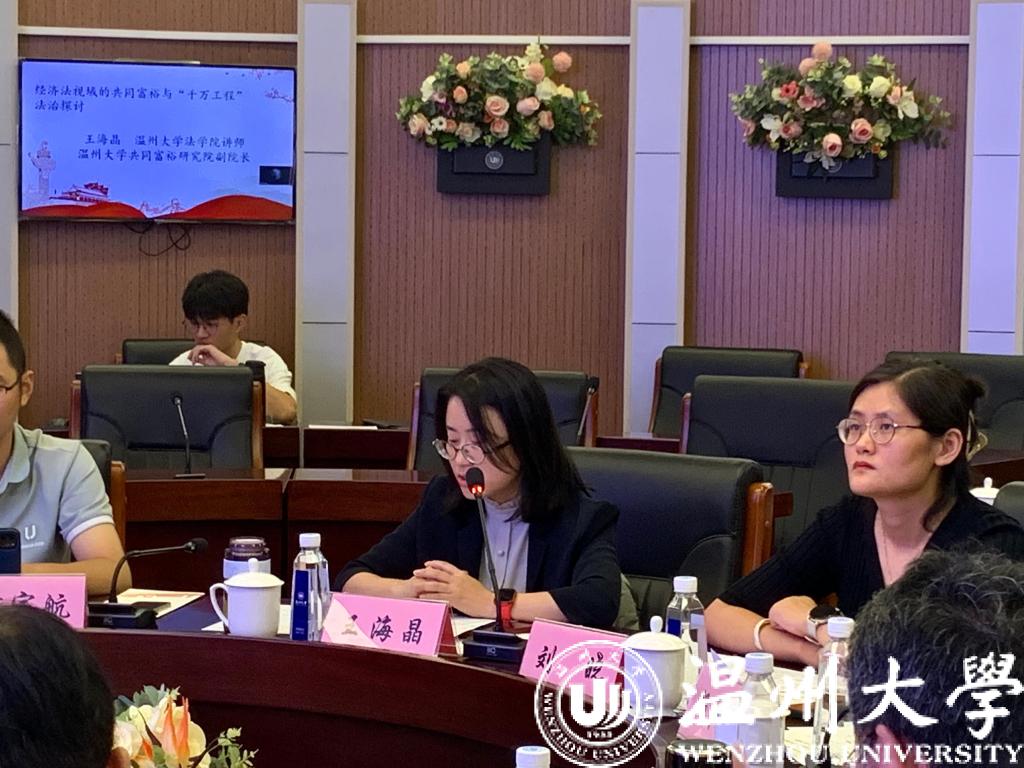 温州大学共同富裕法治研究院副院长、麻将胡了试玩 王海晶博士以《经济法视域的共同富裕与“千万工程”法治探讨》为题,认为“千万工程”的推进是一个系统工程,在推进过程中应该坚持人与自然的和谐共生,强调公众本位,并从经济法的角度提出实现路径。