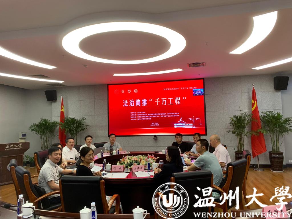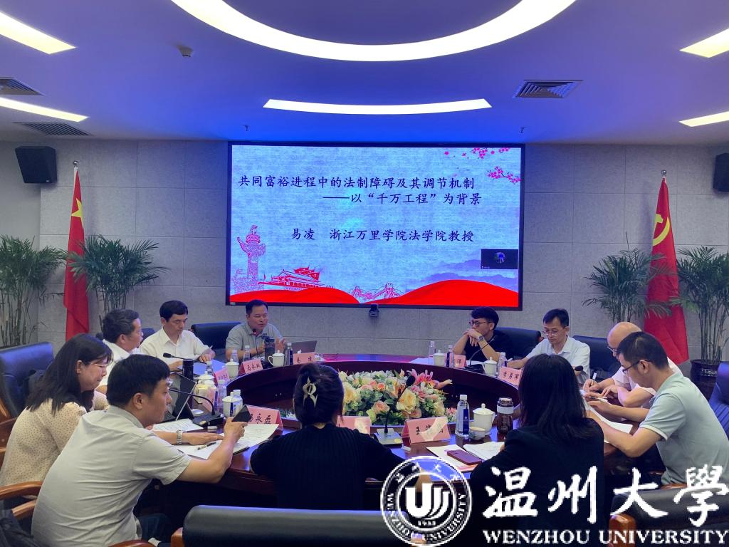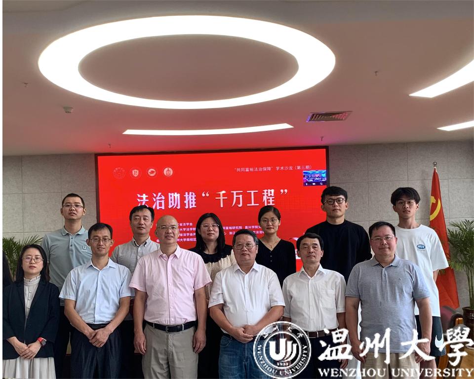 2023年7月9日,“共同富裕法治保障”学术沙龙第3期“法治助推‘千万工程’”研讨会在温州大学岩松堂展示厅举行。本次会议由浙江省法学会指导,麻将胡了试玩(中国)官方网站 、嘉兴麻将胡了试玩 中国共同富裕研究院、嘉兴麻将胡了试玩 文麻将胡了试玩 主办,浙江省法学会共同富裕法治研究中心、浙江省法学会三农法治研究会承办,来自浙江农林大学、浙江万里麻将胡了试玩 、嘉兴麻将胡了试玩 、温州大学等高校的专家学者齐聚一堂,以线下和线上相结合的方式,共同研讨通过法治化的路径推进“千万工程”,推动乡村振兴和农村共同富裕。