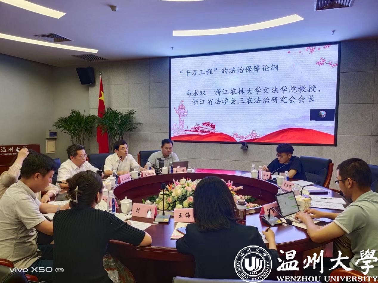 浙江农林大学文麻将胡了试玩 马永双教授以《“千万工程”的法治保障论纲》为题,提出应该强调“千万工程”的法制化、法治化、法理化和标准化,在有序推进“千万工程”的基础上助推乡村振兴和共同富裕。