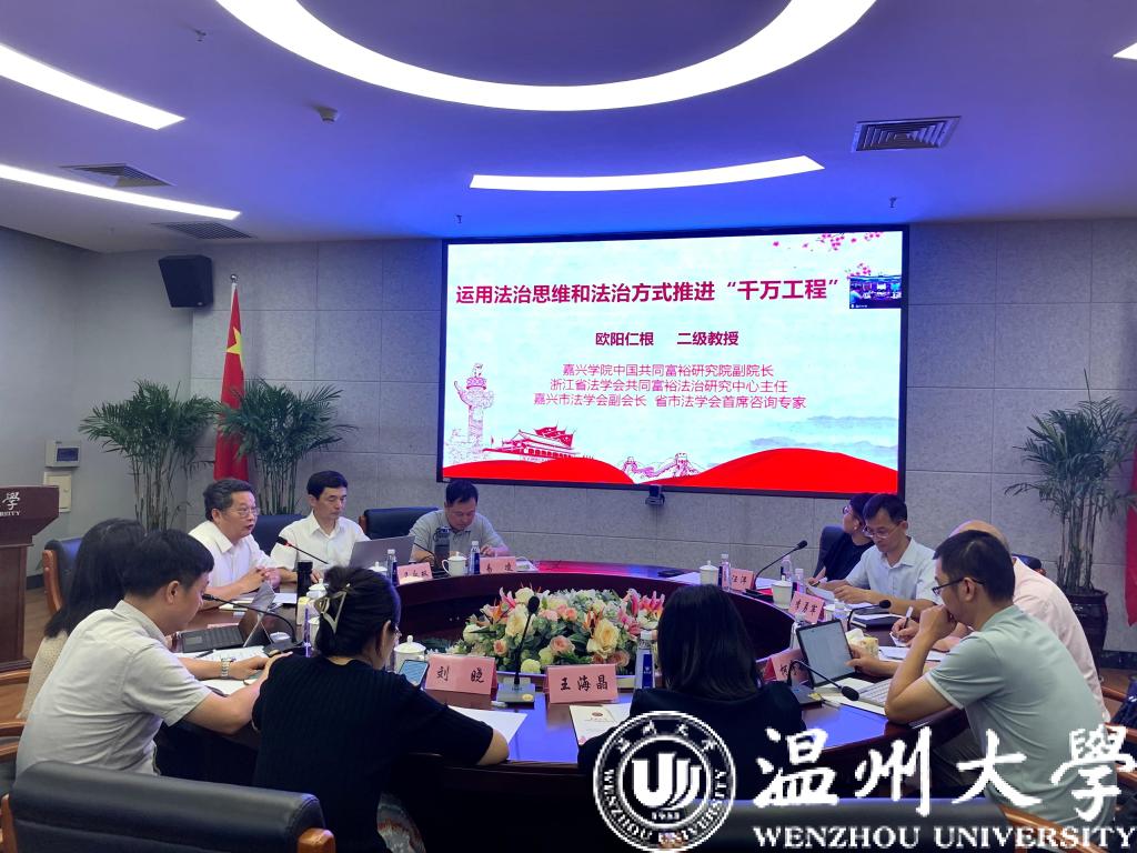 嘉兴麻将胡了试玩 文麻将胡了试玩 欧阳仁根教授以《运用法治思维和法治方式推进“千万工程”建设》为题,就运用法治思维推进“千万工程”建设的基本要求、核心内容和运用法治思维推进“千万工程”建设中政府行为的规范等内容分享了其研究成果。