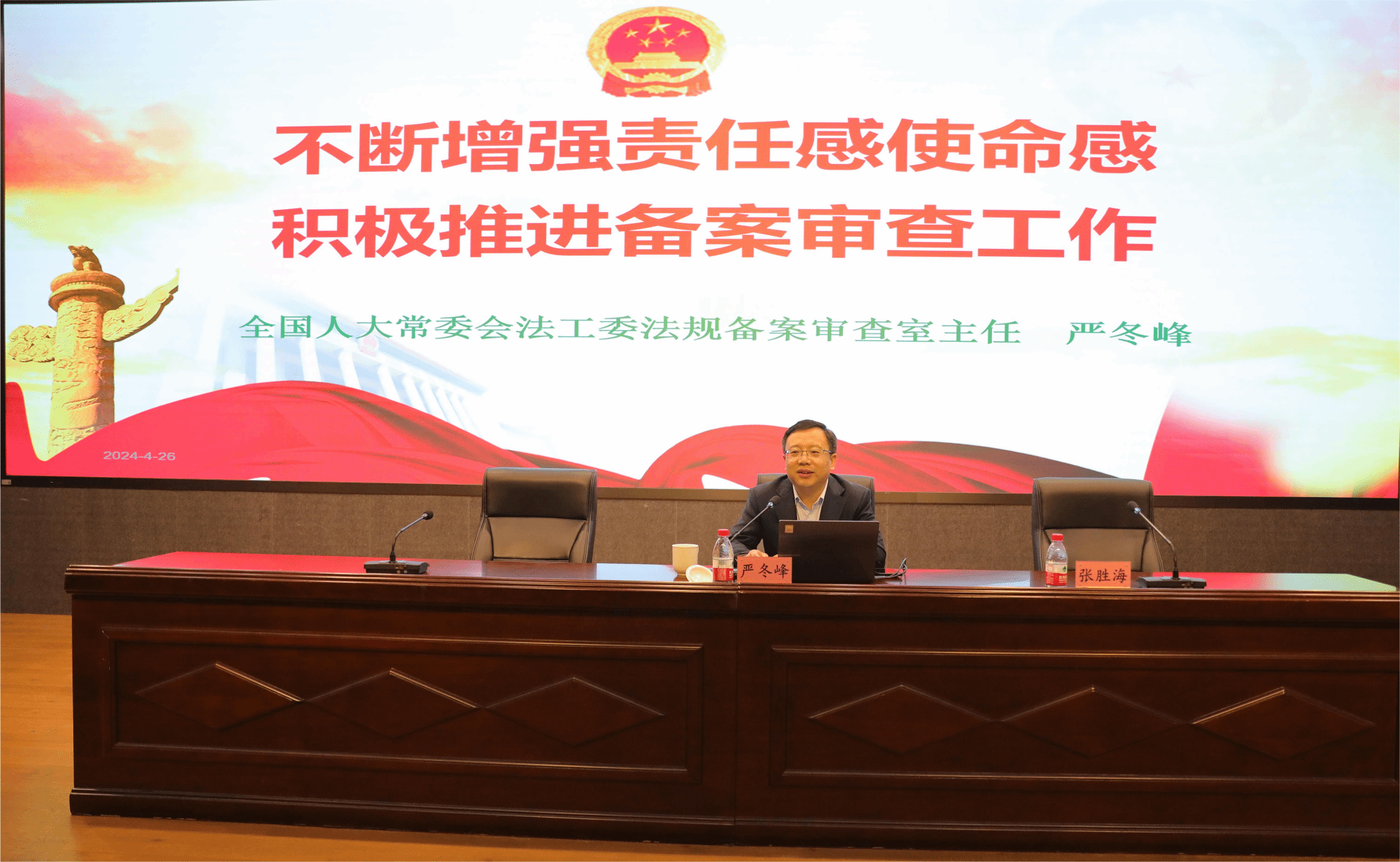 张胜海主任在会议总结中强调备案审查工作的重要性、形成备案审查的体系和共同体。