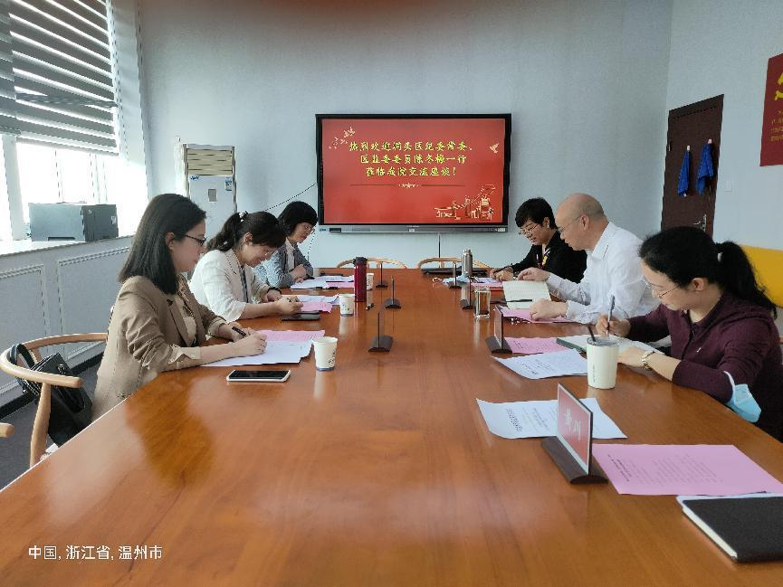 4月25日下午,洞头区纪委常委、区监委委员陈冬梅、洞头区纪委区监委党风室叶海婵主任和叶佳溶一行三人来麻将胡了试玩(中国)官方网站 交流。清廉温州建设研究中心王宗正院长、付翠莲教授和谢丽珍副教授参加座谈。