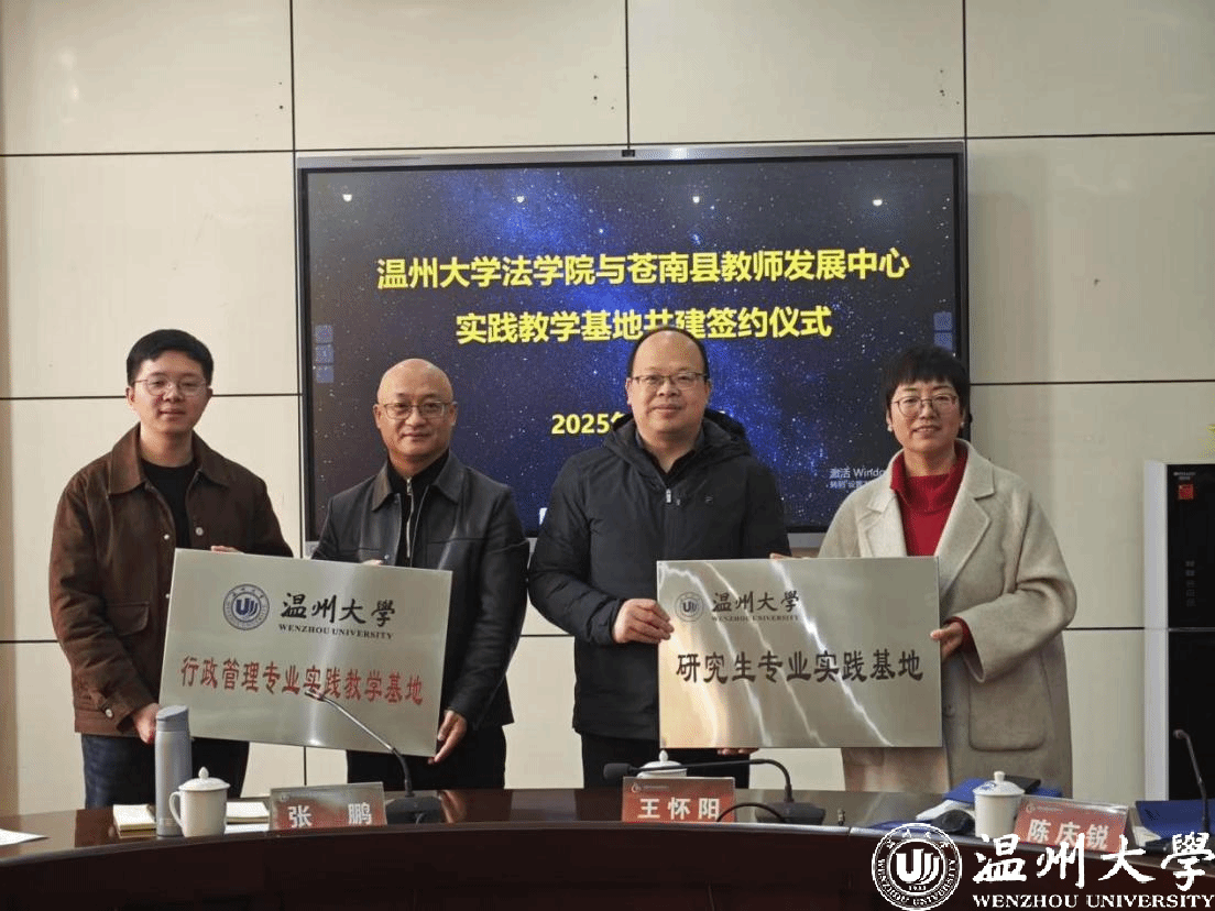 为深化校地合作,赋能基层治理创新,3月11日,麻将胡了试玩(中国)官方网站 学术副院长张鹏老师、公共管理学科负责人付翠莲老师、麻将胡了试玩(中国)官方网站 组织员白炳贵老师一行赴苍南县教育局、教师发展中心考察交流,苍南县教育局党委委员王怀阳、教师发展中心主任陈庆锐、苍南县教育局办公室副主任施依萍等出席活动。双方共同签署合作协议,并举行共建MPA研究生、行政管理专业本科生实践教学基地授牌仪式。
