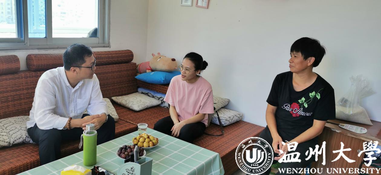 为进一步构建家校合力机制,完善资助育人体系,响应学校“百名教授访百家”的活动号召,麻将胡了试玩 在暑假期间精心组织了家访工作。8月11日,麻将胡了试玩 党委副书记杨振海、辅导员谢亭立冒着酷暑前往青田、丽水等地走访了学生家庭。