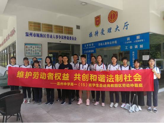 7月25日上午,温州中学高一(15)班学生一行14人来到温州市瓯海区劳动人事争议仲裁委员会高教园区派出庭参观学习。麻将胡了试玩(中国)官方网站 教师、派出庭庭长柯宇航博士予以了热情的接待,向前来参观学习、开展暑期社会实践活动的高一学子们表示热烈的欢迎。