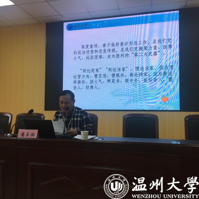 潘玉驹部长从2013年8月19日习近平总书记在宣传思想工作会议上长达两个小时的讲话及接下来一系列会议及讲话开头,深刻论述了意识形态工作的重要意义。“高度重视、善于做好意识形态工作,是我们党的政治优势和优良传统,是我们党凝聚力量、鼓舞士气、战胜困难、走向胜利的第二大武器。”潘部长通过大量案例分析了高校意识形态领域存在的一些问题,提高了我们对于意识形态工作的重视。