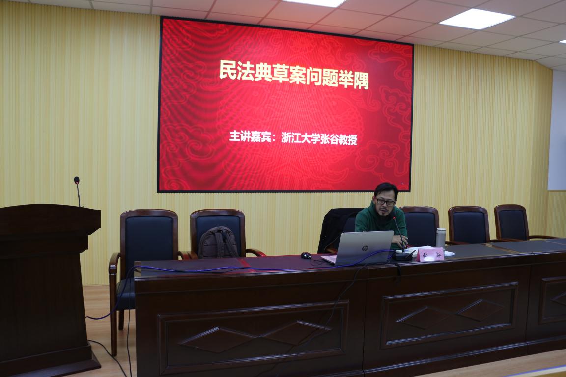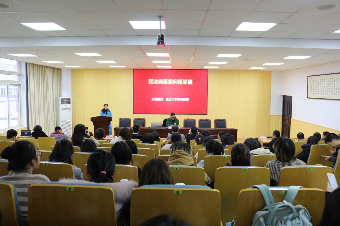2018年12月14日下午,温州法治大讲坛专题讲座特邀浙江大学张谷教授主讲《民法典草案问题举隅》,温州大学法政麻将胡了试玩 法学系主任何平主持,平阳法院、市律协、麻将胡了试玩 师生逾百人参加讲座。