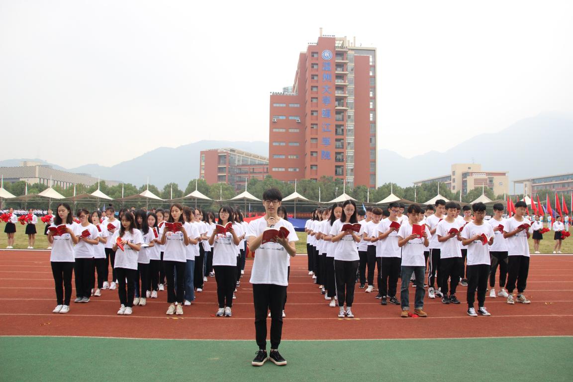 在庄严的升国旗仪式后由温州大学赵敏校长致开幕词。他总结了过去一年学校体育工作取得的成绩,希望每位运动员在场上赛出成绩,赛出风格,让本次运动会成为追求阳光生活,提倡健康理念,点燃青春梦想的盛会!最后由运动员代表、裁判员代表庄严宣誓。