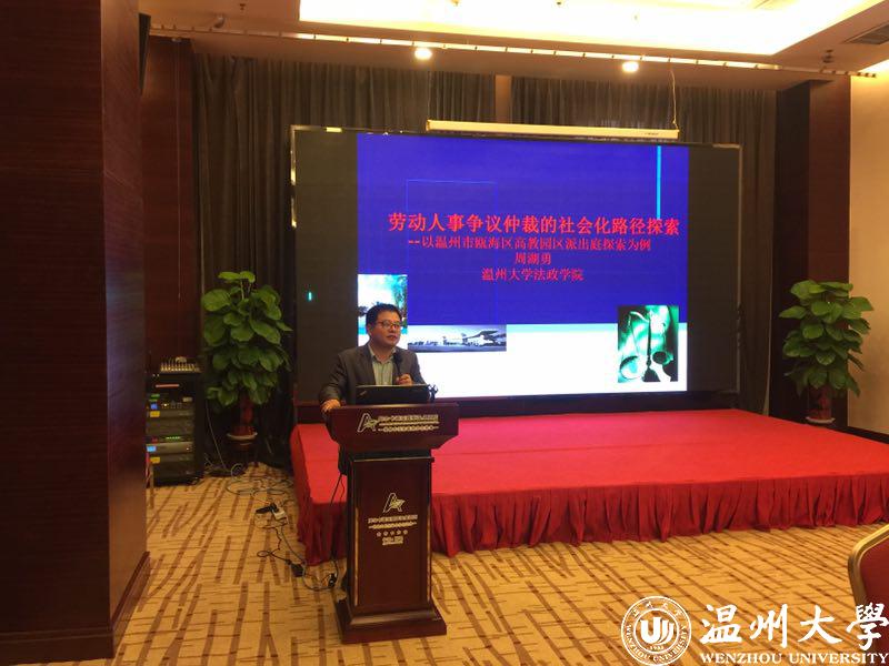 我省社会法研究会副会长兼秘书长周湖勇博士参与,并作了《劳动人事争议仲裁社会化路径探索》的主题发言。