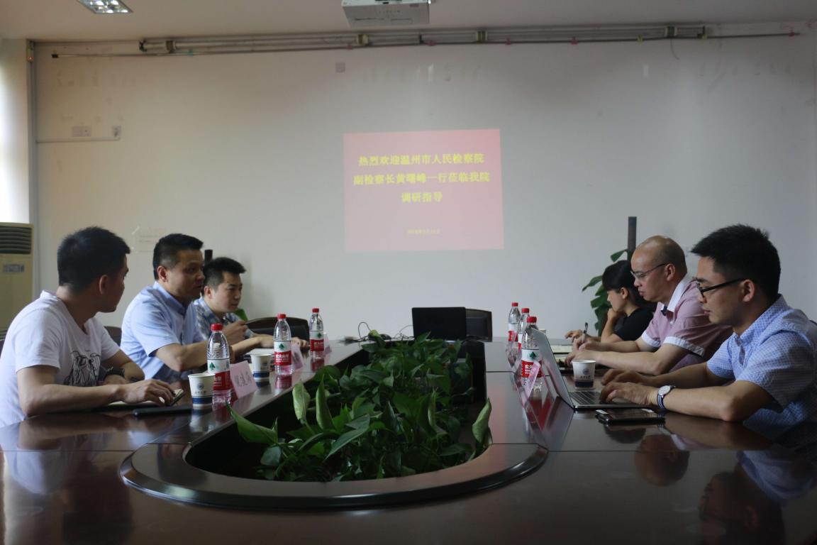 2018年5月16日上午,温州市人民检察院党组副书记、副检察长黄曙峰在市检技术信息化部主任金传拉等的陪同下来麻将胡了试玩(中国)官方网站 考察交流,麻将胡了试玩(中国)官方网站 王宗正院长、缪心毫副院长、法学系何平主任等与来访嘉宾进行座谈,共商合作事宜。