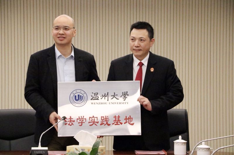 2018年1月5日,在王宗正院长的带领下,党总支副书记严玲红、副院长缪心毫、法学系副主任谢丽珍、学生科副科长孙德升等赴苍南县人民法院就两院合作进行洽谈。苍南县人民法院院长陈斌等出席了签约仪式。