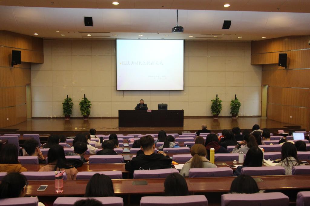 讲座中,赵万一教授首先从民法典的重要性讲起,主要集中讲了三个问题:一是民法基本原则的内容,如民事权利神圣原则、平等原则、自愿原则;二是民法总则规定对具体民商事法律设计的不同影响(在商法中的可能例外适用),如公平原则、平等原则、交易安全原则;三是民法典时代如何处理民商关系。赵教授又谈及后民法典时代商法的出路和对策,内容有:(一)在制定民法典的同时,加强对商事基本法的修改与完善(典型的如公司法,证券法,破产法):(二)强化商法与市场经济的关系,确立商法的市场经济基本法地位;(三)强化商法的社会经济活动引领功能,充分发挥商法对社会经济关系的规范作用(以P2P、私募基金、ICP为代表的新型金融活动,以网上交易、物联网为代表的新型营商行为);(四)充分发挥商法对国家发展战略的服务作用,凸显商法的国际化色彩(一路一带,商事仲裁);(五)高度重视商法伦理和商人道德的建设工作,充分发挥商法对市场经济的道德引领作用;(六)推进商事审判独立化,充分发挥商事审判、司法解释对商法的助推作用。