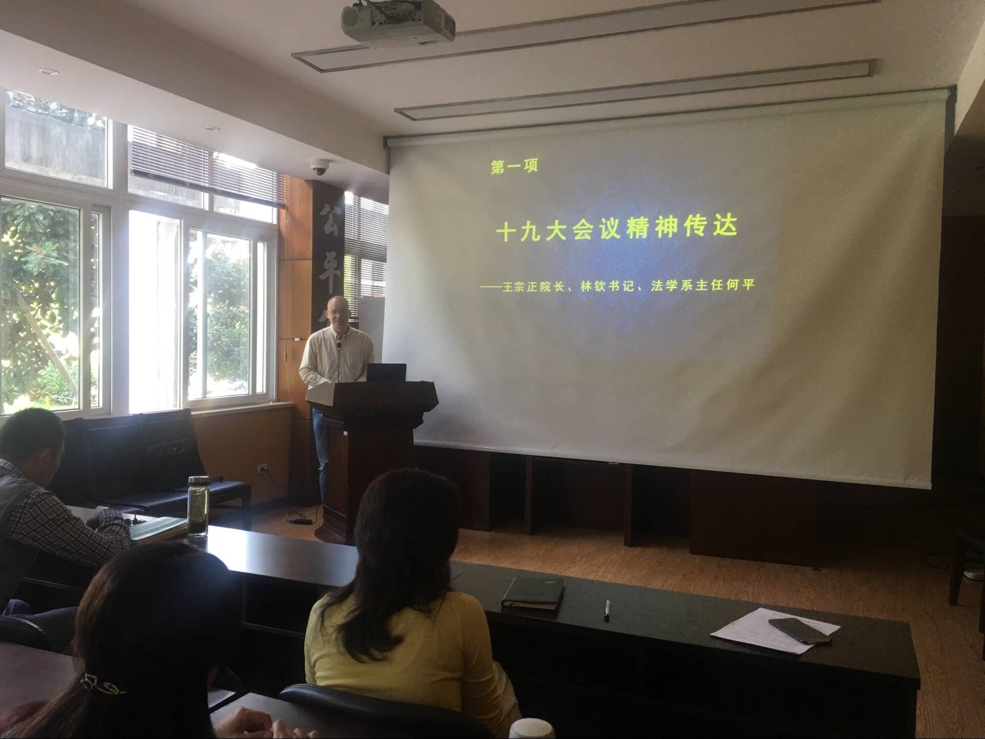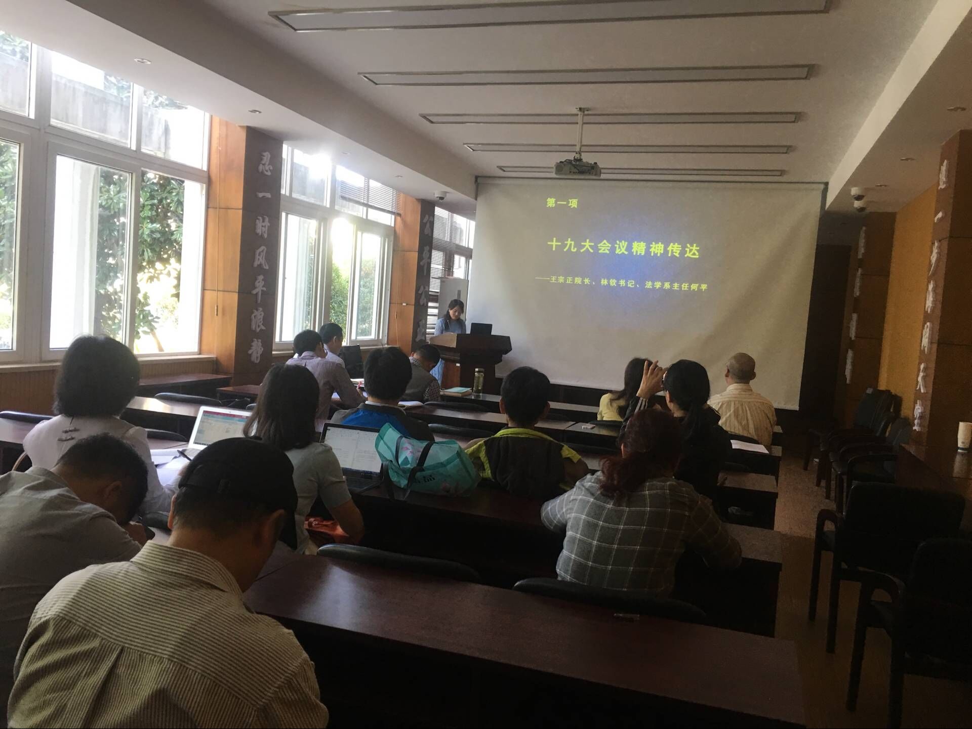 2017年10月25日下午,在法政麻将胡了试玩 报告厅举行了全体教工和学生党员学习会,会议由林钦书记主持,全体教工和学生党员参加。