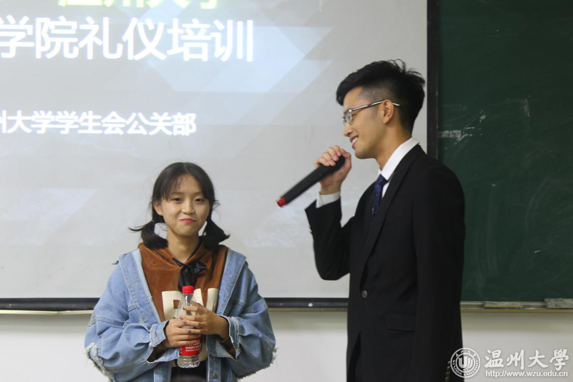 首先,随着组织部赵雪妙宣布团干培训开班仪式的正式开始,法政麻将胡了试玩 学生会主席团成员依次上台发言,法政麻将胡了试玩 团委副书记金婵上台分享了自己对法政麻将胡了试玩 团委学生会的看法和工作心得,院团委学生会副主席章方正上台介绍了团学的组成部分及各位指导老师。随后,团委学生会主席梅铁楠为大家分享了他的演讲技巧,副主席颜林杰向大家分享自己在团学两年以来的工作心得,使团学的新成员们得到了宝贵的经验分享。紧接着,进入培训的第二环节:礼仪培训。来自温州大学校学生会的公关部成员,从礼仪的内涵和重要性、体态姿势礼仪、着装礼仪、交谈礼仪、公关场合礼仪以及公文写作等方面为团学干事们进行了礼仪培训。公关部的成员个个西装革履,举止优雅大方;在理论和实践结合下。先后讲述了礼仪的重要性,站姿、坐姿、行姿、蹲姿的得体方式,着装的恰当选择,交谈方面的注意点,邻里关系老幼关系访客待客礼仪以及请假条、邀请函的写作方式。台下的各位干事们,个个聚精会神、全神贯注。现场提问环节大家都踊跃发言、各抒己见,学习气氛浓厚。