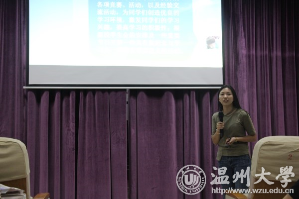 学生工作。接着,团委副书记金婵上台发言,表达了对17级新生加入团委、学生会各部门和院级社团组织的欢迎。随后,院团委、学生会各部门和各级社团通过精心制作的PPT和幽默有趣的自我介绍,让在场的新生对团学和社团组织充满了期待,见面会现场气氛热烈、互动多多。