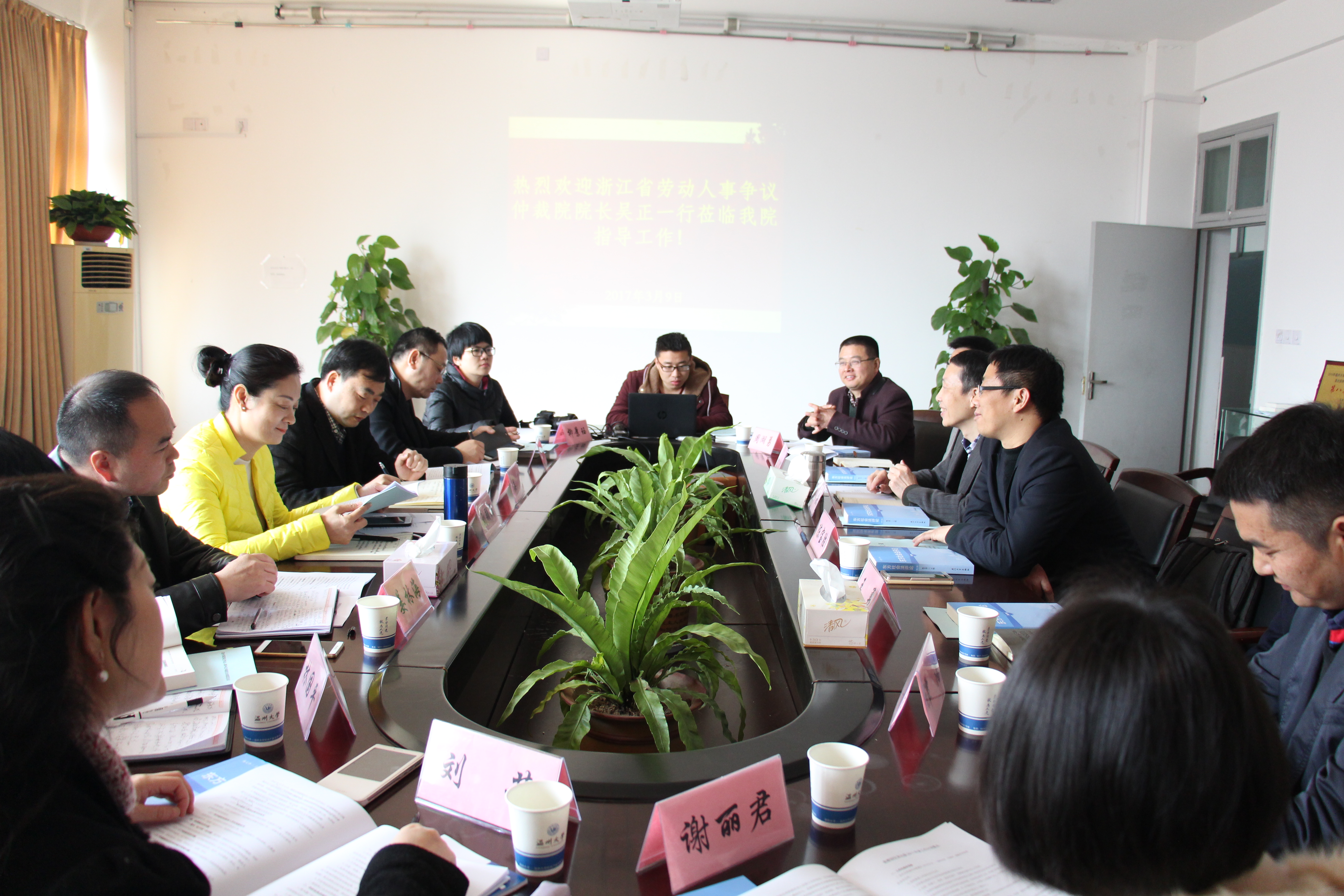 3月9日上午,浙江省劳动人事争议仲裁院院长吴正一行视察瓯海区设在我校的劳动人事争议仲裁委员会高教园区派出庭建设运行情况。温州市人力社保局纪检组长胡凯生、区政协副主席、人力社保局局长陈继林、温州大学人文社科处副处长陈宝胜、人事处副处长蒋俊、法政麻将胡了试玩