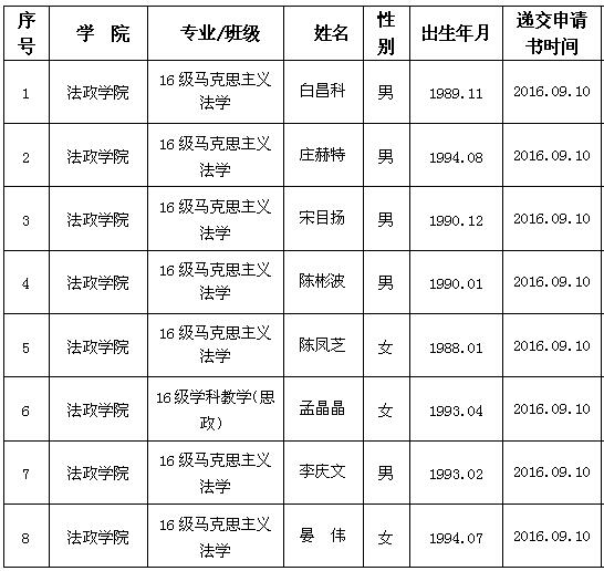 2016/2017学年第一学期研究生 入党积极分子名单公示