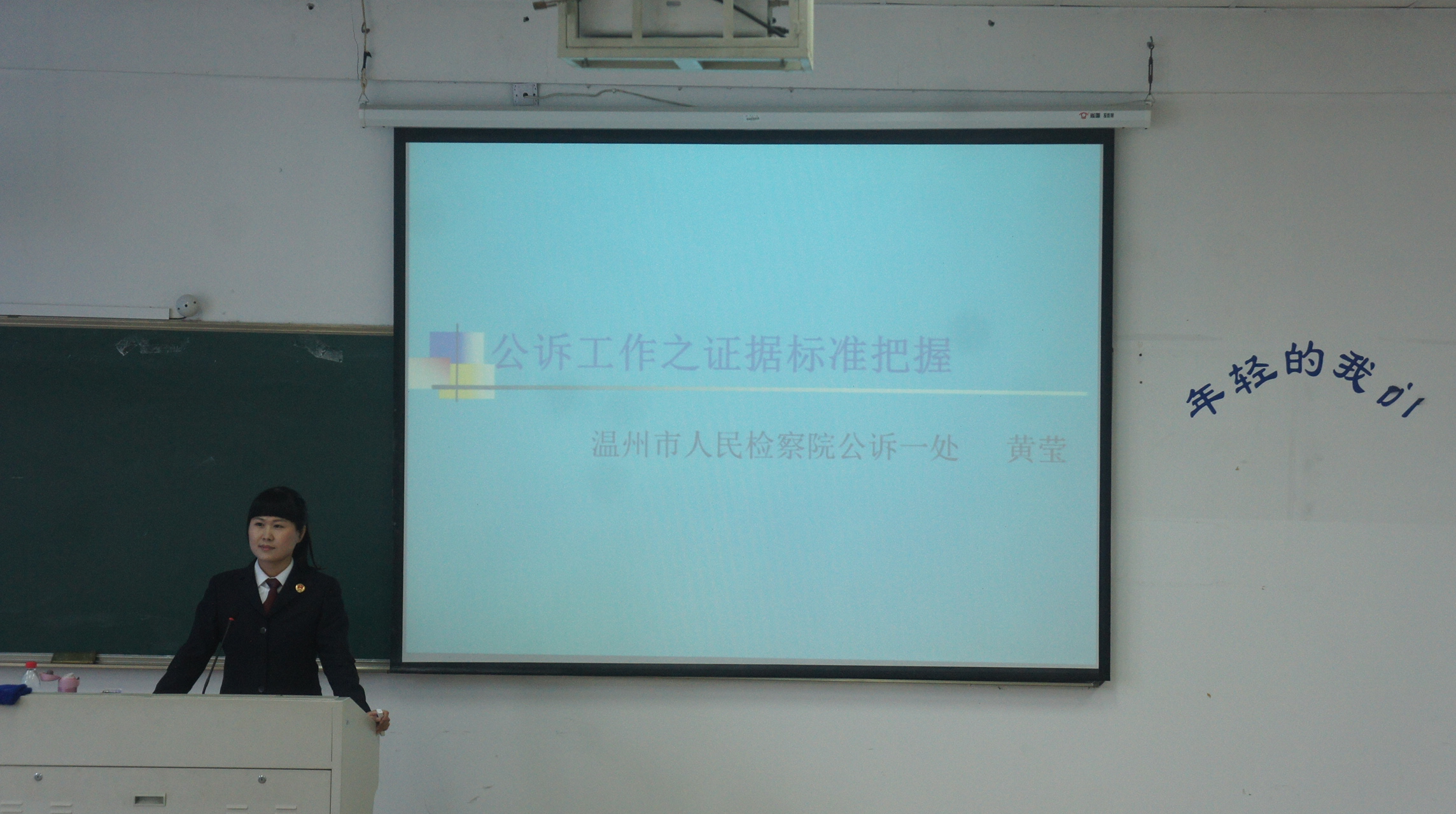 2016年4月14日下午1:30,温州市检察系统优秀演讲员、法律职业辩论赛优秀辩手温州市检察院公诉一处黄莹检察官作为《检察实务》第四讲,为大家讲授"如何把握公诉工作之证据标准"。