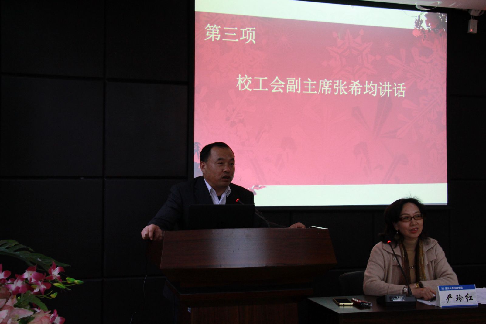 2016年1月8日下午两点,法政麻将胡了试玩 在麻将胡了试玩 报告厅召开了四届教职工暨工会会员大会,大会由院党总支副书记严玲红主持。学校工会主席张希均全程列席了会议,并作重要讲话。