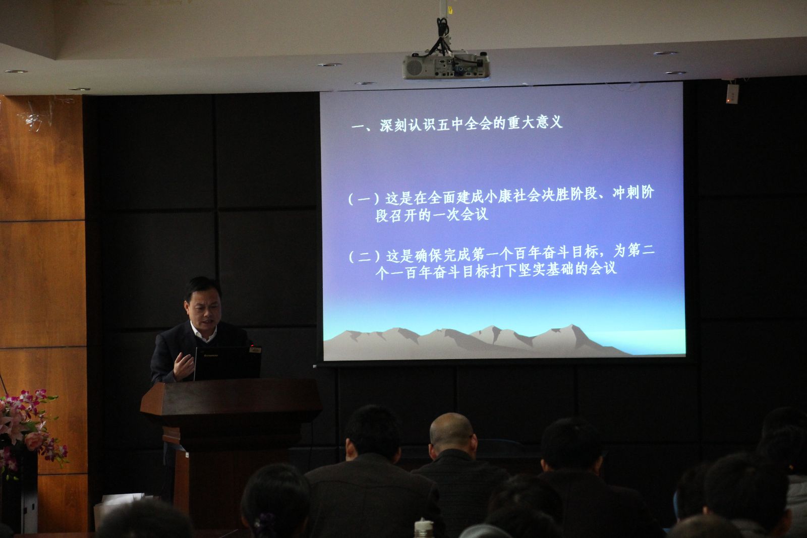 在这次政治专题学习活动中,潘玉驹教授为麻将胡了试玩(中国)官方网站 党员同志深入解读了十八届五中全会会议的精神。首先,潘教授陈述了十八届五中全会的重大意义和我国"十三五"发展环境的特征,当前是我国发展的重要战略机遇期,同时也是矛盾增加、风险隐患增多的时期,对我国的发展来说既是机遇又是挑战。随后,潘教授分析了全面建成小康社会的目标和原则,未来五年要解决平衡发展问题,包括产业迈上中高端和拉动消费。最后,潘教授介绍全面建成小康社会的发展理念,应坚持创新发展、协调发展、绿色发展、开放发展、共享发展。