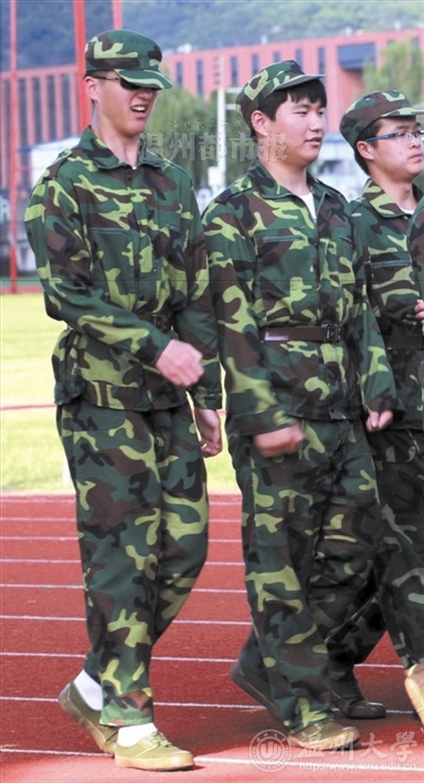 郑荣权的辅导员陈铎老师介绍,开学后,荣权和其他大学生一起领取军训服参加军训,坚持参加军训中的所有科目。