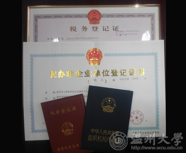 近日,温州大学法政麻将胡了试玩 七彩虹环境法治联盟的大学生环保志愿者在温州市民政局注册登记民办非企业单位,名称为"温州市七彩虹环保公益服务中心",业务范围包括环境保护公益服务活动,承接政府职能转移和购买服务事项。注册后,结合七彩虹社团以往的活动经验和基础,由专职的环保公益人与大学生志愿者共同开展环保公益活动。据了解,这是温州市第一家由大学生环保社团志愿者注册成功的民办非企业单位。