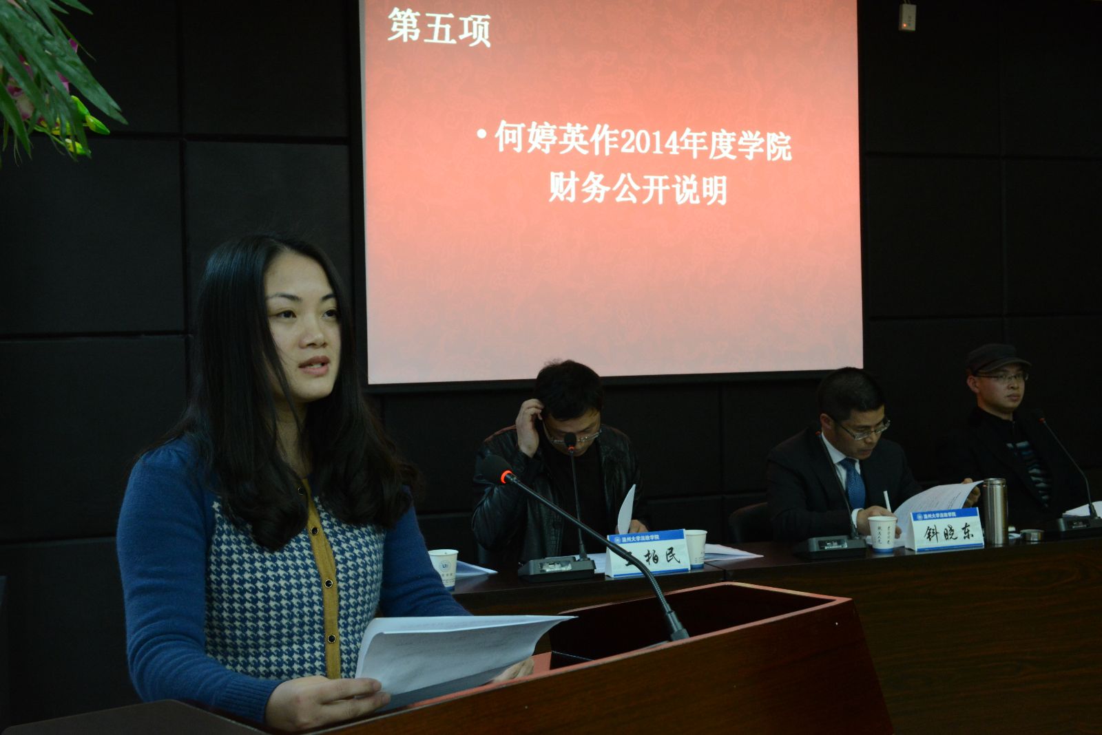 办公室主任何婷英作《2014年度麻将胡了试玩 财务公开工作报告》。