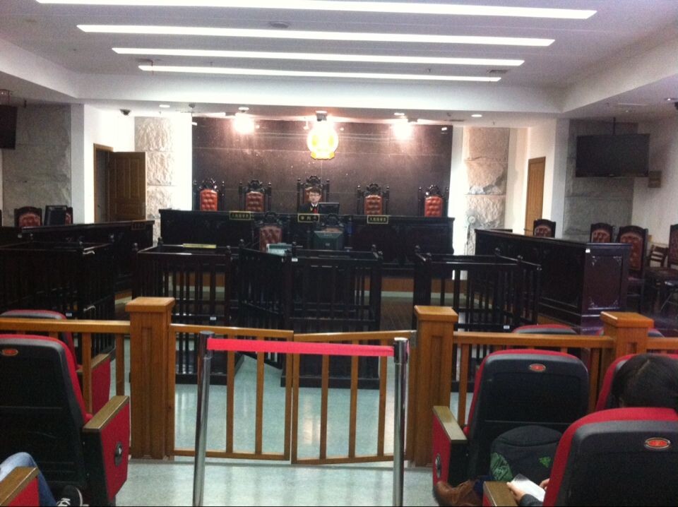 14时左右,全体人员顺利抵达温州市鹿城区人民法院门口,经过一段时间的等待后,同学们被允许进入法庭。走入法庭,首先看到的是位于正中间的法官席以及法官席上方庄严的国徽,接着是法官席下方的书记员席,分布两边的原告席和被告席,最后是位于旁听席前方的犯罪嫌疑人席。全体人员在旁听席落座。