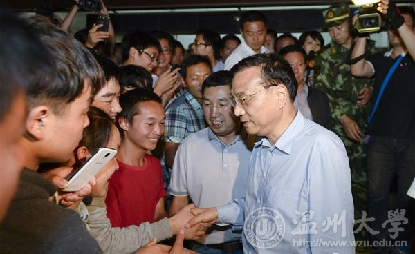 4日晚8时许,中共中央政治局常委、国务院总理李克强来到鲁甸县民政局察看救灾物资调运。"总理先是去慰问了民政局的工作人员,然后来到抗震救灾物资接收中心,和在这里工作的大学生志愿者一一握手。总理当时说,你们的工作很繁重,需要你们的支持,还称赞志愿者很给力。"王梦回忆道。