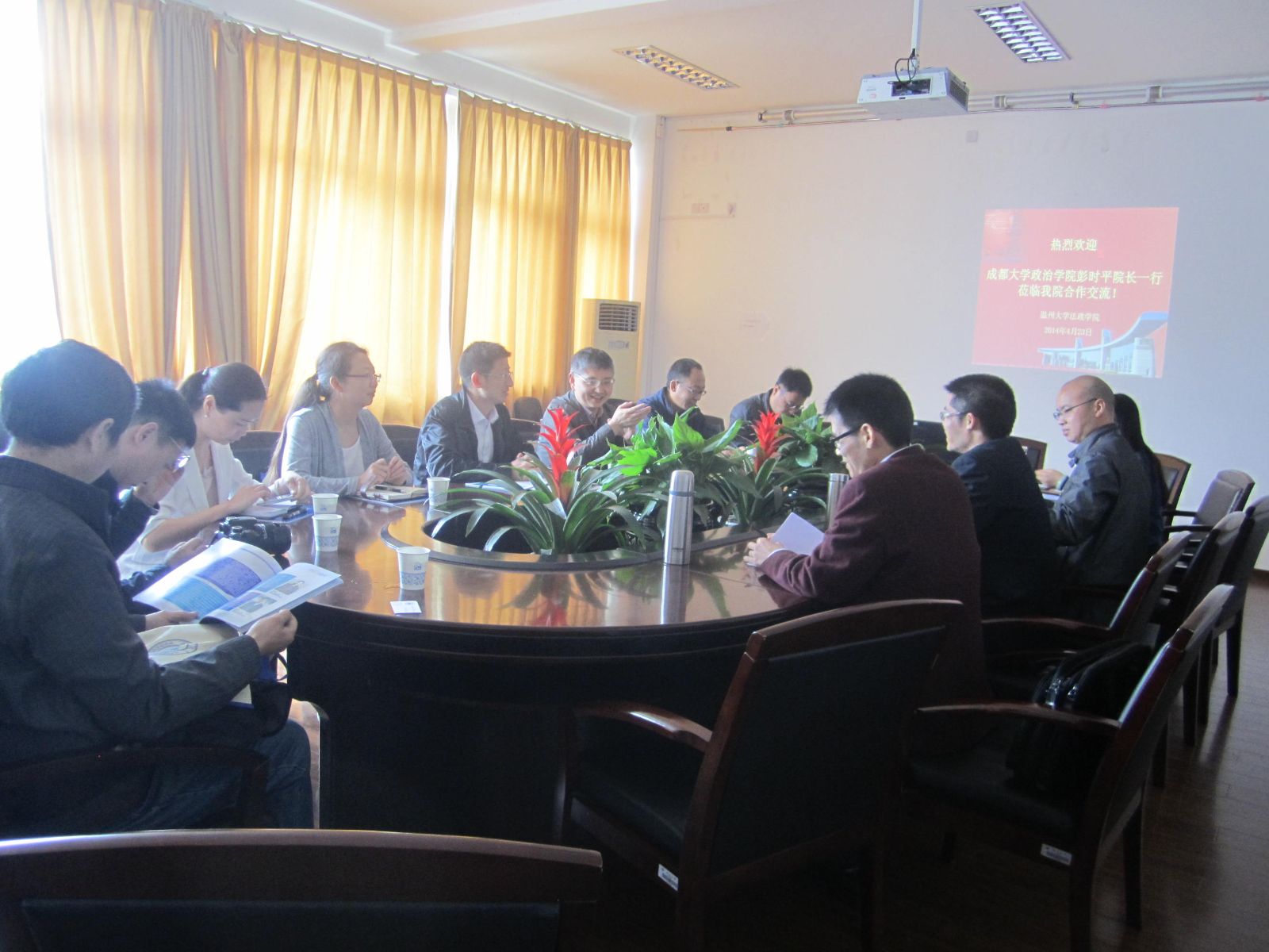 彭时平院长对麻将胡了试玩 的支持表示衷心感谢,对麻将胡了试玩 取得的成绩表示赞赏。他介绍了成都大学政治麻将胡了试玩 在专业设置、学科建设、学生培养、科研管理等具体举措及取得的成绩和经验。