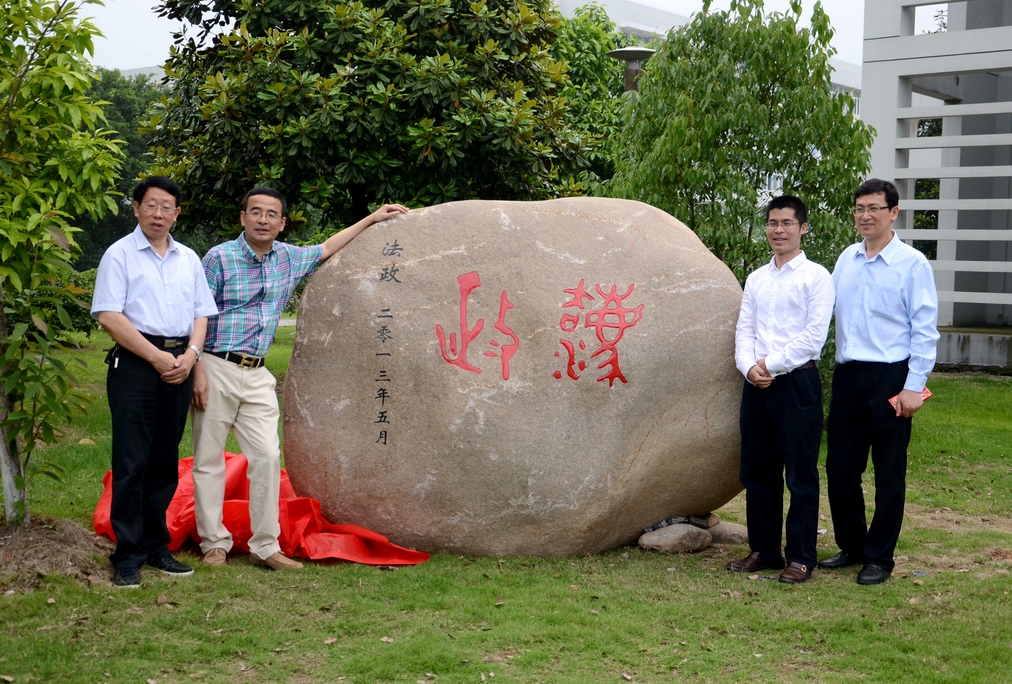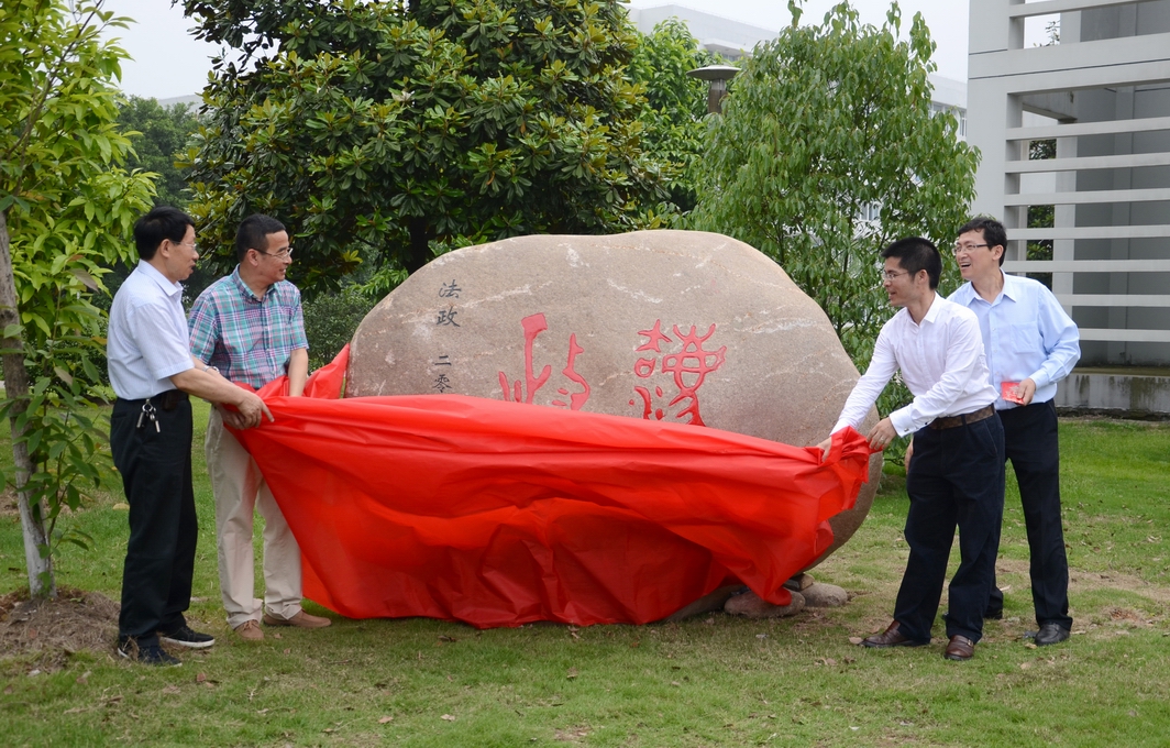 月18日上午,校友景观石捐赠和揭幕仪式在法政楼前举行,法政麻将胡了试玩 院长钭晓东、党总支书记王柏民和